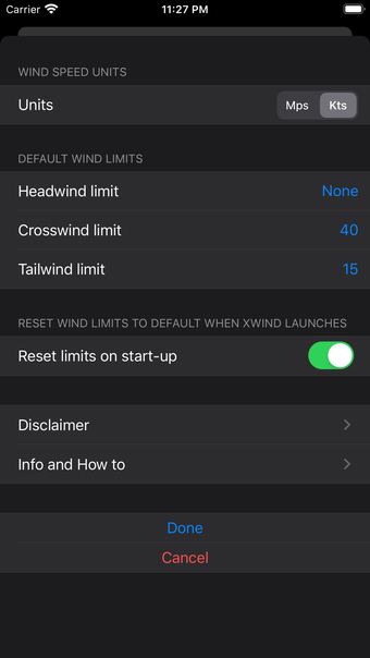 xWind هي أداة بسيطة لعرض نفس البيانات التي تستخدمها الطائرة. يمكن العثور عليها تحت عنوان "الرياح".